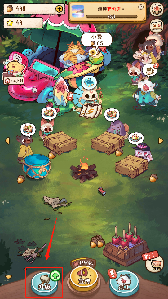 1、打开篝火猫咪咖啡馆游戏,点击右下角的“员工”选项;