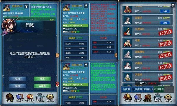 3、入派把钱都捐给门派,申请当掌门,36岁入派 44岁稳定回钱,这时前面没买长生丹,一定要买时间很紧,这八年你就只能努力约战 找会掉金功法的刷,带上小丁多打战力10万左右经验,生死斗还剩8年,很足够,开始把打手阿青找来,跟他买玉送还他,涨好友度。