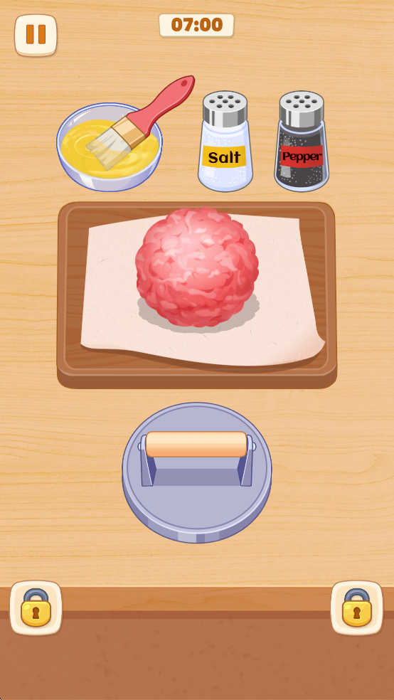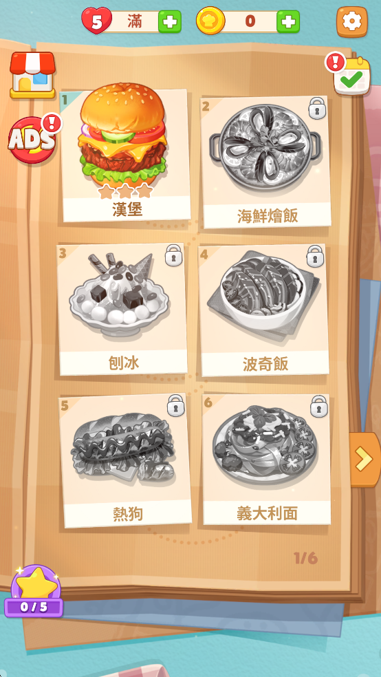 进入游戏后,你会发现有多个关卡,但它们需要逐步解锁。首先,你将能够制作已解锁的菜品,如汉堡和海鲜烩饭等,随着游戏的进展,更多创意食谱将等待你解锁。