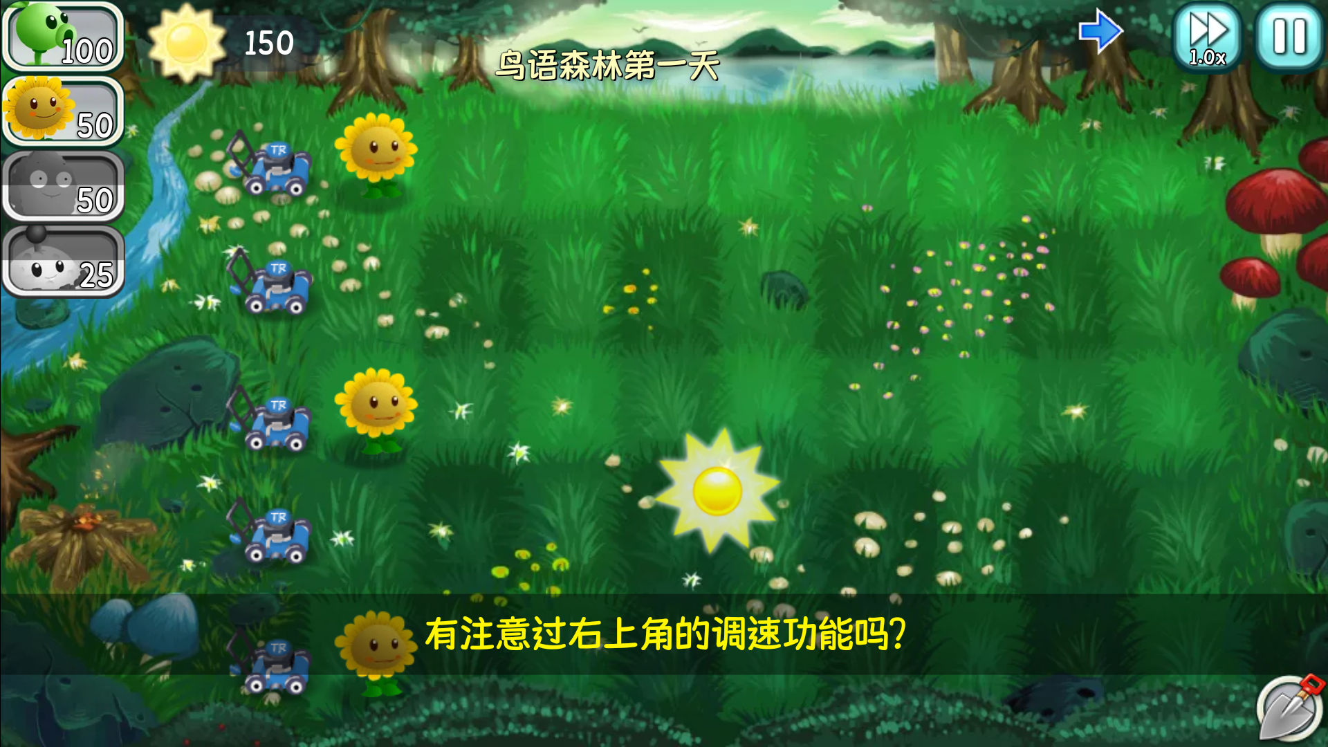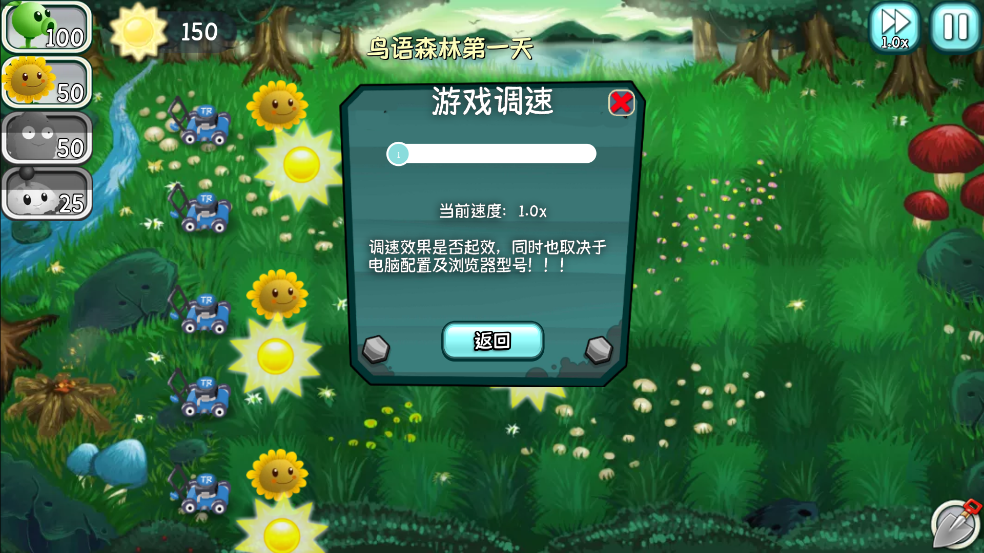 3、进入关卡以后,我们可以点击右上角调速按钮,加快游戏的速度