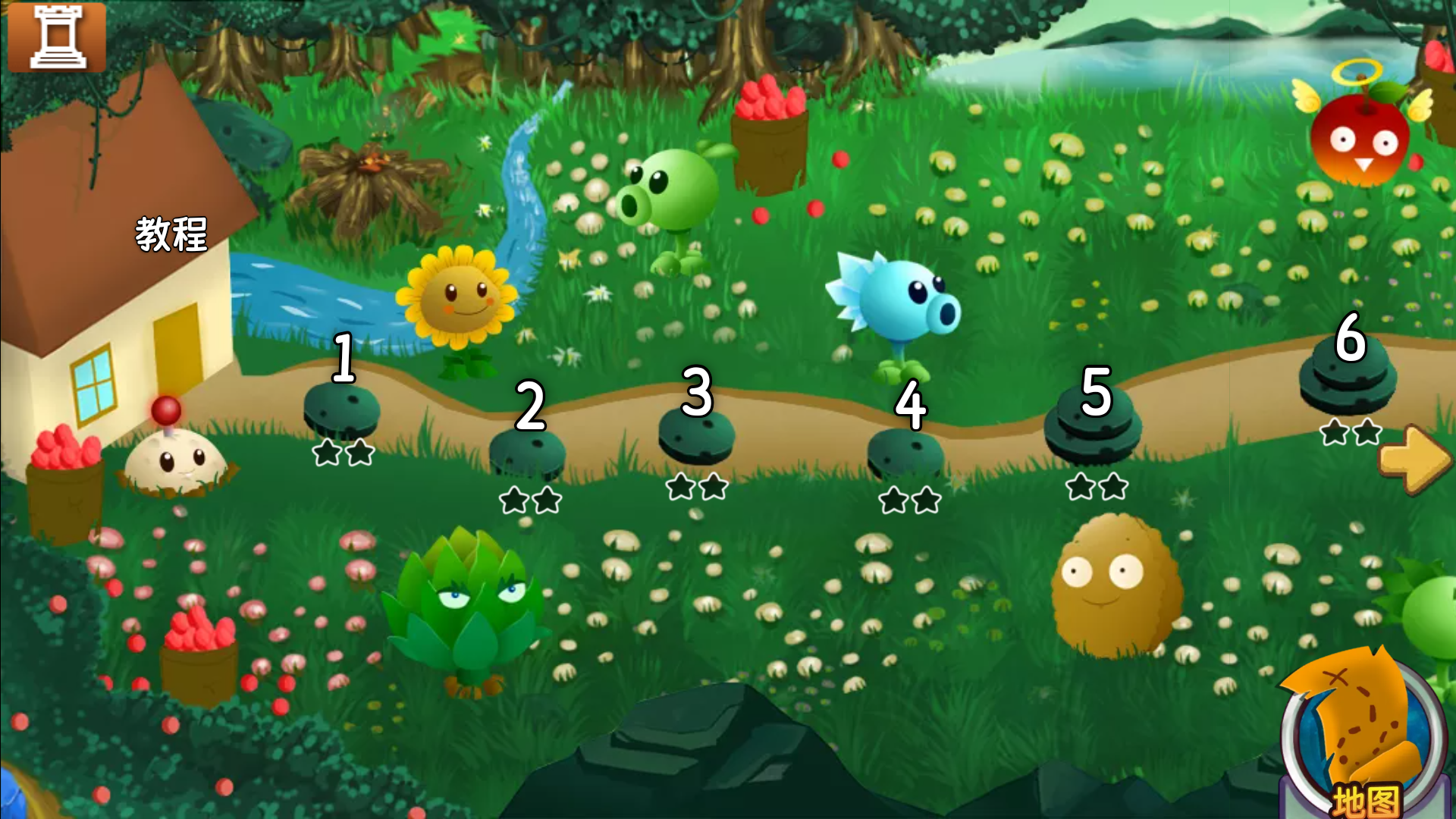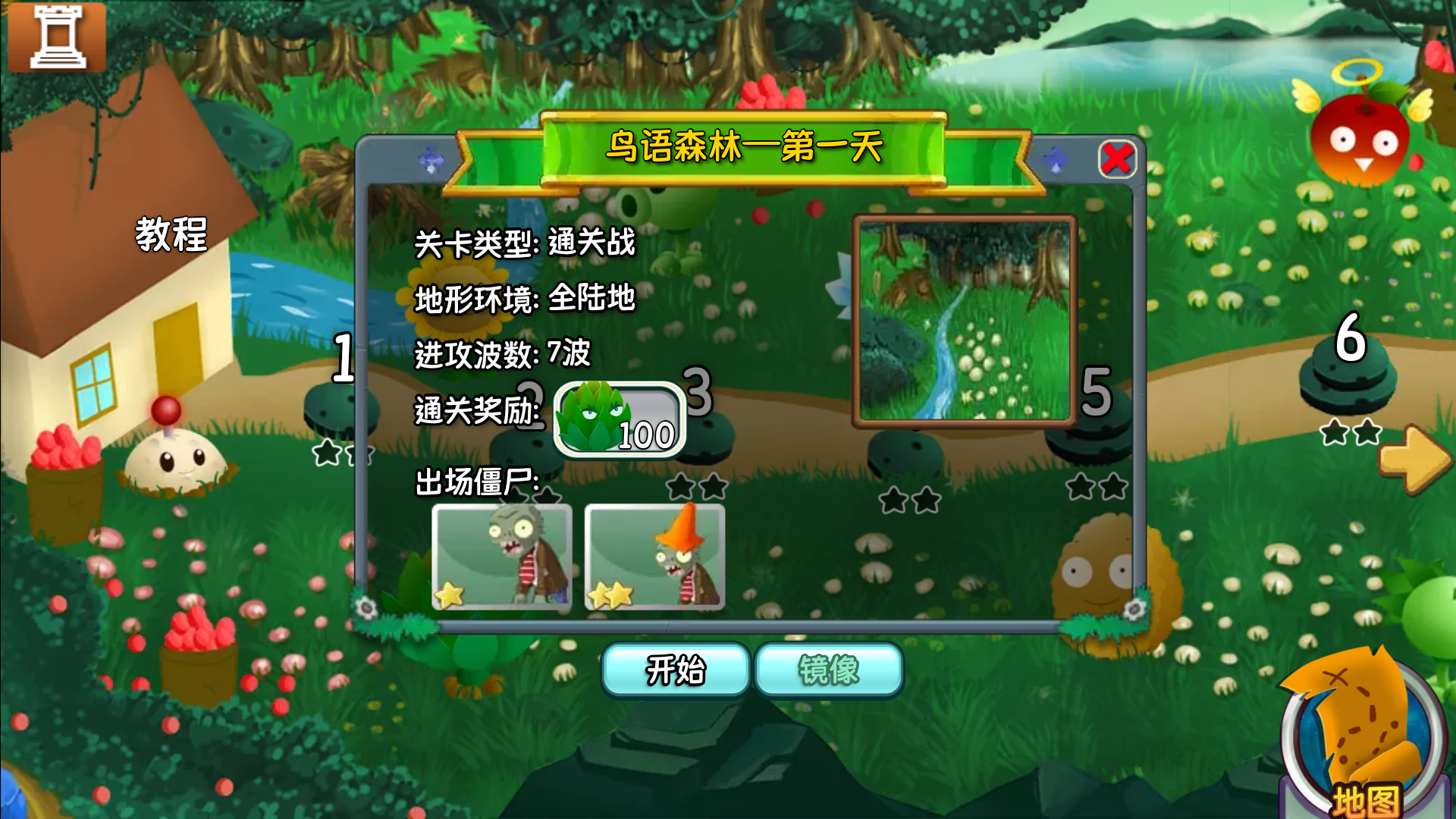 2、冒险模式中的所有关卡都是已经解锁了的,我们可以选择自己想玩的关卡,但是推荐从第一关开始(如果不熟悉游戏操作的话,可以选择教程)