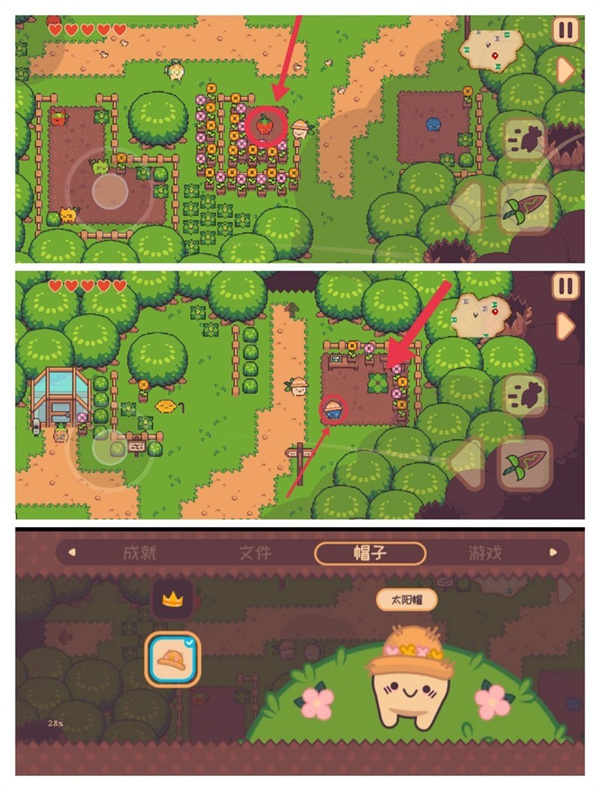 返回寻找草莓并说明情况,可获得一封信件,直接销毁后返回找蓝莓,即可得到一顶太阳帽。