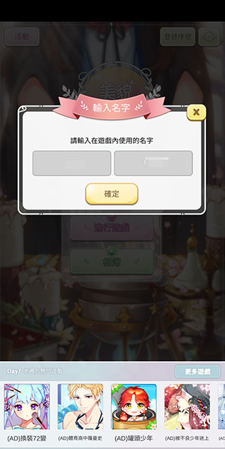 1、点击进行游戏按钮后,需要先设置游戏内的角色名字。