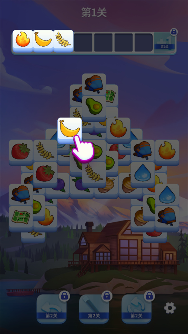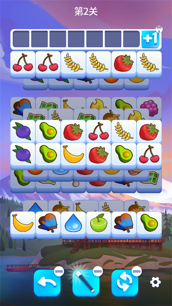 1、只需轻点一下即可将方块堆积起来。三个相同的方块即可配对。