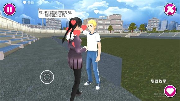 5、最后,去操场找到男主(靠近时会冒红色心)并与之说话,任务完成。