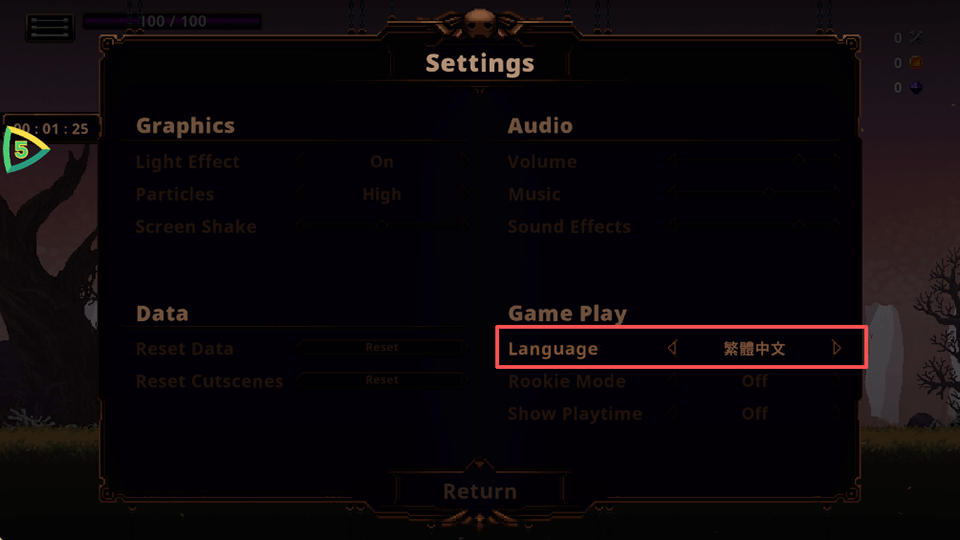 3、在设置界面内找到语音选项,并切换为繁体中文后点击return即可设置完成