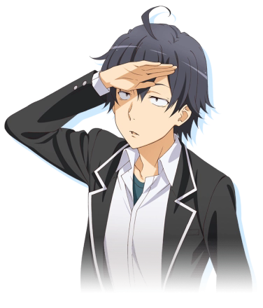 成绩、体力、外貌都算是水准之上,有着独特的别扭思考回路,贯彻了与身边的人保持距离的“孤独主义”的总武高中2年级学生。面对“侍奉部”接到的委托,常常会由于自己消极的价值观而展现一些十分冷场的解决方法。