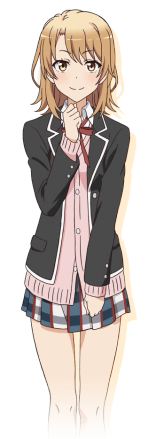 八幡的同班同学,“侍奉部”的社员。看起来像是如今常见的活泼开朗型女高中生,实际上非常懂得察言观色、配合他人作出反应。对能够直率地表达出自我的雪乃抱有很大兴趣,因此才加入了侍奉部。