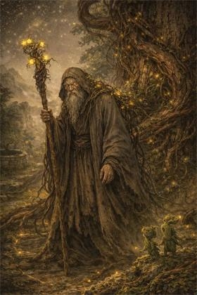 形貌:常化灰袍驼背老叟,手拄虬结木杖,杖头常开三两朵昏黄小花;真身乃万年古血藤,粗如殿柱,皮裂如龙鳞,昼伏夜舒