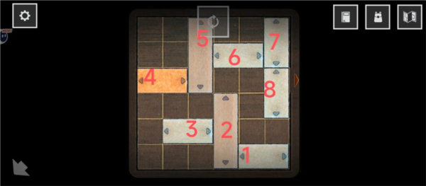 14、需要滑动棋子到空格即可消除,最后剩下5个棋子即可获得段国强牌位,之后来到厨房,在左边拿到厢房钥匙、陶鸡。
