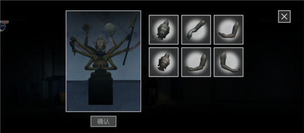 雕像手取有东西的那只手脑袋截中间的,中间的雕像底下有六