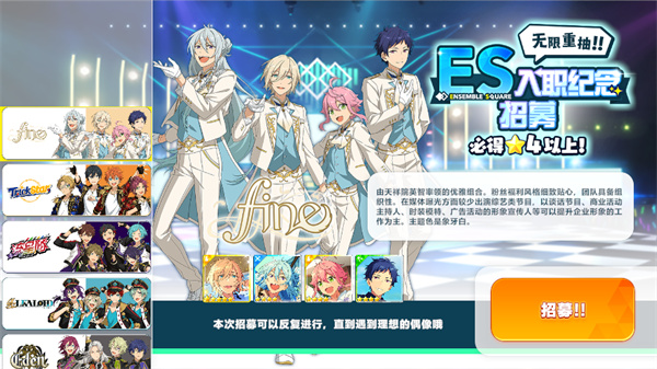 4、当玩家想要新的偶像前来助力时可以前往招募中进行抽取。