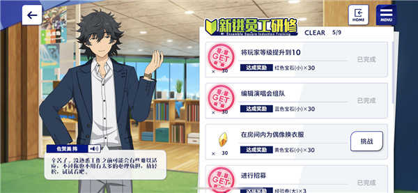 【新进员工研修】:通过一些简单的任务帮助制作人更快上手。点击【挑战】可以直接跳转到该任务的相关界面。