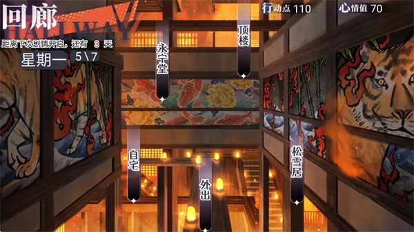 2. 游戏内设有多种日常活动:电玩可提升心情值,战训则增强角色战力,但两者均消耗行动点。行动点可通过休整恢复,合理分配是推进剧情的关键。