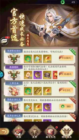 - 利用前期获得的代金激活“降权特权”,大幅提升降妖次数,从而加速角色等级成长。
