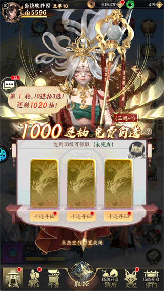 - 进入游戏后,优先在主城右侧福利菜单中领取代金券、寻仙令等初始资源,随后前往“寻仙”界面进行连续招募,快速获取五星神将。