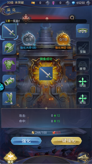 优先强化武器、项链等输出类装备,集中资源提升攻击、命中等关键属性,确保战斗效率持续领先。