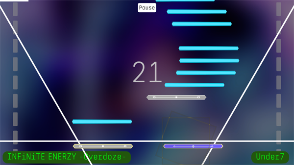 2、Drag(拖拽):浅蓝色音符,只需在白线上保持手指接触,当音符经过时自动判定得分,无需主动滑动。