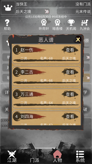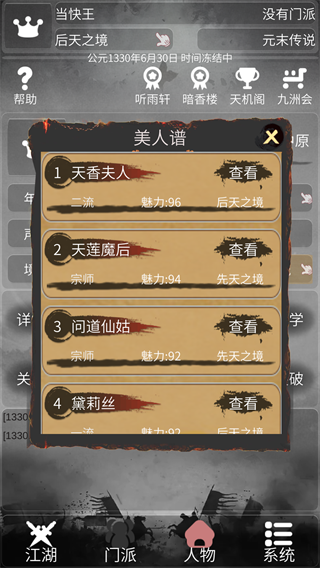 3、体验动态发展的丰富剧情,每一次选择都将影响人生轨迹——你可以成为一代大侠、隐世高人,或是权倾天下的庙堂重臣。