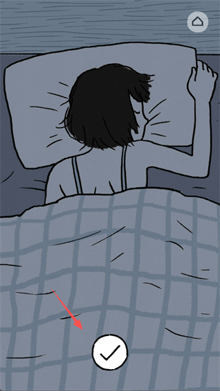 夜晚回到床上,点击床尾的对勾图标,完成一天的生活闭环。