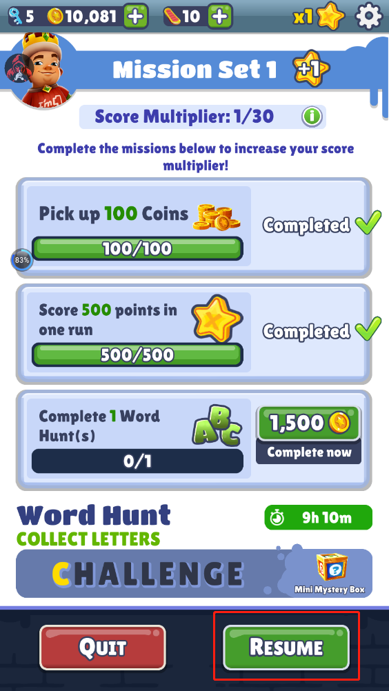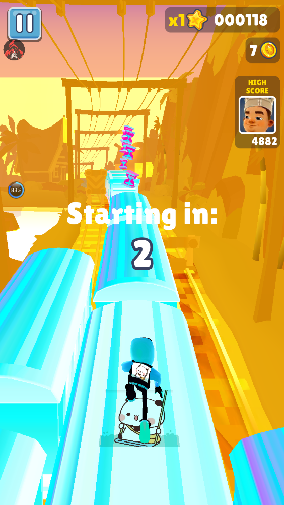 6、等待3秒倒计时后,即可重新投入跑酷冒险。