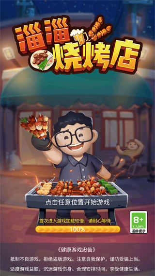 1、启动淄淄烧烤店游戏后,点击屏幕任意位置即可开始你的烧烤生涯。