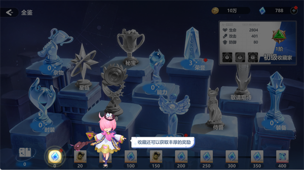 收集游戏中的杂物、时装、装备等各类藏品,每达成一定收集进度,即可领取钻石与高级契约。该系统为长期玩家提供稳定且可观的资源积累路径,在探索中悄然致富。