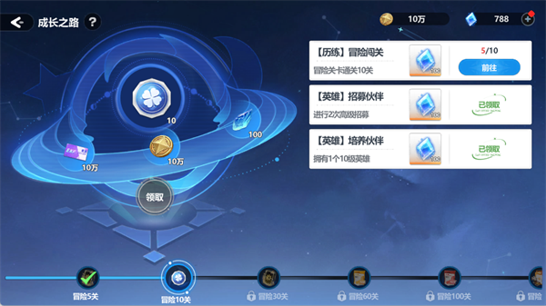 通过达成冒险闯关、英雄招募与培养等阶段性目标,逐步解锁丰厚奖励。每完成一个成长里程碑,即可领取钻石,是长期稳定的钻石获取渠道。