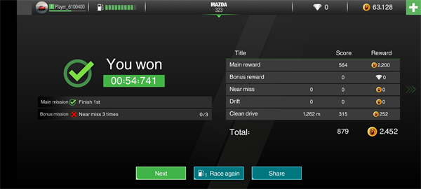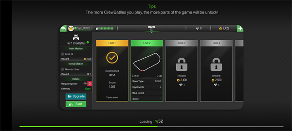 - 每完成一项任务,即可获得大量金币奖励,并记录当前圈速成绩。