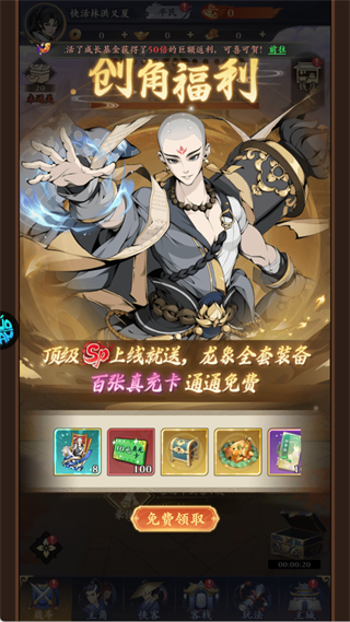 新玩家创建角色后,立即获得SP天山梦郎、全套龙象装备以及百张真充卡,开局即巅峰,无需漫长积累,迅速融入精彩纷呈的武侠世界。