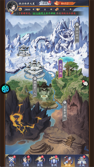 主地图汇聚多种核心玩法入口,包括华山论剑、闯荡江湖、挑战掌门人、古墓奇遇等。这些内容构成日常冒险主线,提供丰富奖励与深度策略体验,让江湖之旅始终充满新鲜感与挑战性。