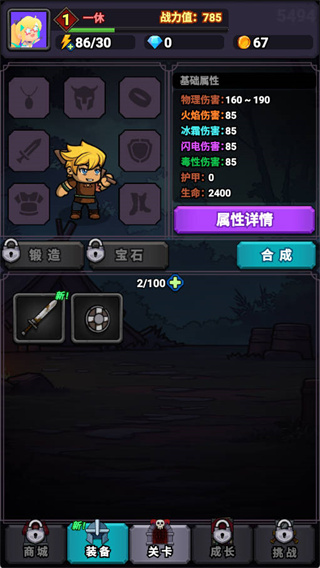 第3关后可通过观看视频触发双倍奖励(含装备重抽机会);挑战玩法每日必清,是核心材料的重要来源。