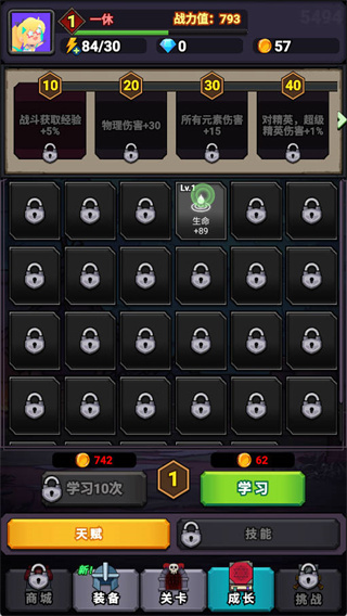 每10级解锁一个高级天赋位(可用钻石开启)。