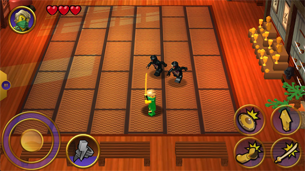 《乐高忍者元素之战》是一款融合乐高积木风格与横版格斗玩法的动作手游。玩家操控各具特色的忍者角色,运用格挡、跳跃、闪避及火焰、雷电、寒冰等元素技能展开激烈对战。操作简单直观,战斗机制丰富,考验攻击节奏与防御时机的精准把握。