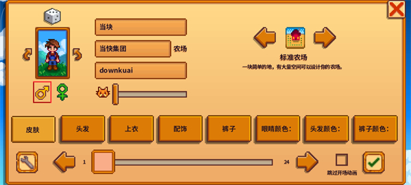 - 填写角色与农场基本信息,确认后点击【√】;