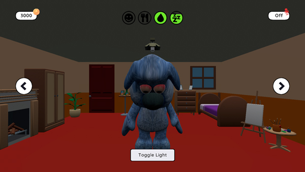 5、夜晚来临时,记得切换至卧室场景,让巴勃罗安心入睡,帮助它恢复各项状态。