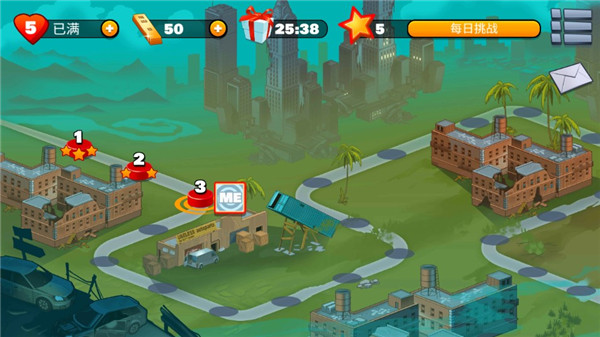 6、游戏还设有每日挑战模式,并提供三种武器类型:枪械(默认可用)、手雷与榴弹发射器(需在关卡中获得三星评价后解锁),丰富战术选择,提升重玩价值。