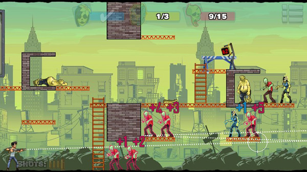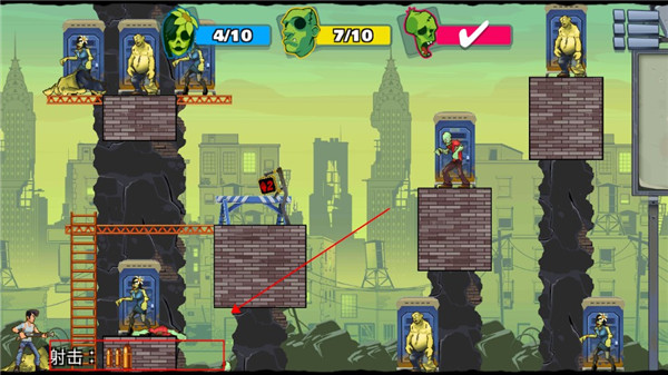 7、瞄准时若弹道路径覆盖僵尸,其头顶会显示“+分值”提示,优先规划能同时击中多个加分目标的弹道路线;但需注意,在任务目标未完成前,应优先确保指定僵尸被消灭,通关始终是第一要务。