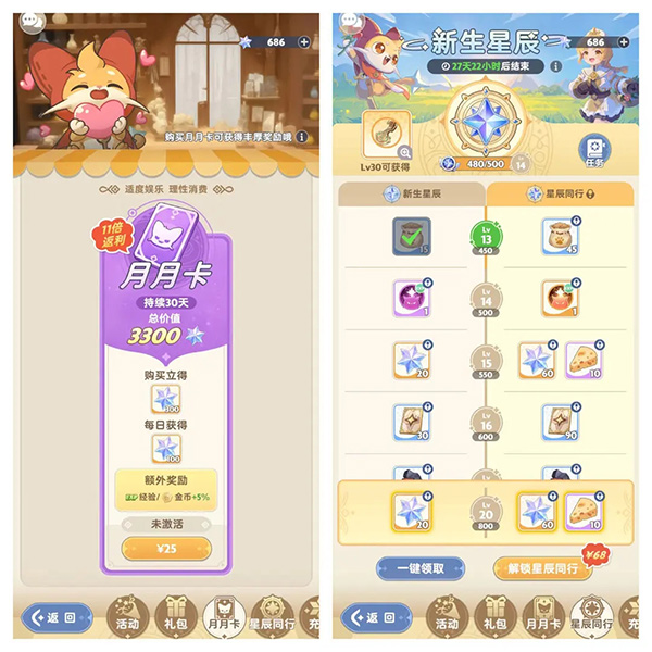 - 月卡玩家:在零氪基础上叠加月卡与“星辰同行”权益,提升资源获取效率。