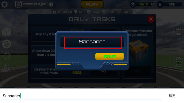 1、下载并安装沙盒汽车工艺模拟器最新版,首次启动时需输入一个英文名称作为你的游戏昵称。