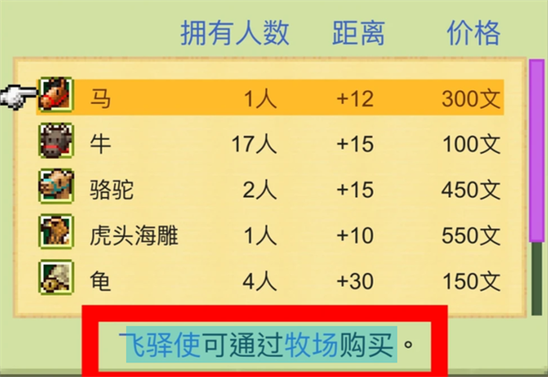 飞驿使可通过牧场购买。