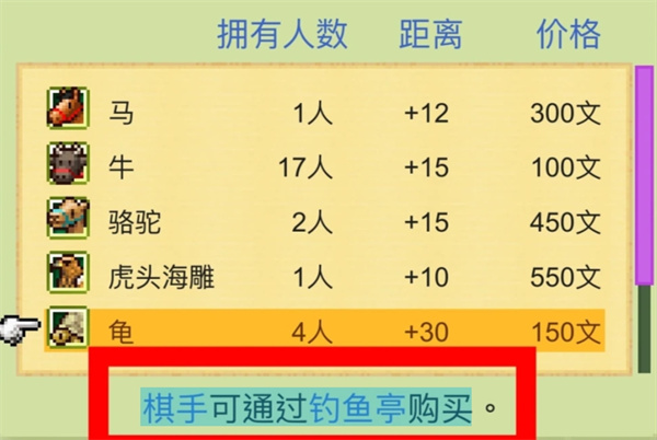棋手可通过钓鱼亭购买。