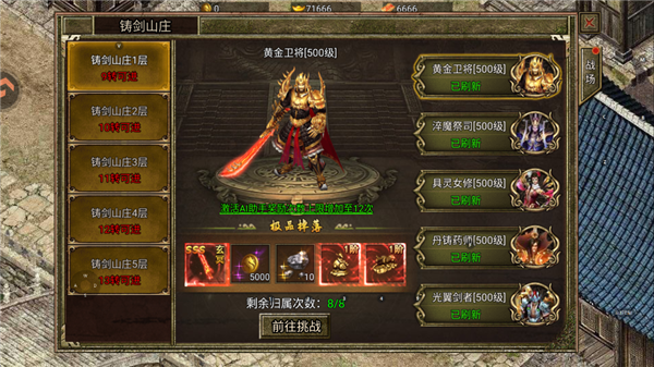 挑战铸剑山庄的层数扫荡机制,是当前阶段获取顶级武器【SSS·玄冥之剑】的重要途径之一。该玩法产出稳定,是追求高战力玩家不可错过的装备来源。
