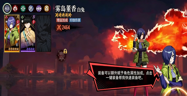 作为游戏主角,金木研机制全面且强势。其被动可通过造成伤害持续吸血,单体作战能力极强。技能兼具爆发与持续输出:小技能对全场敌人造成范围伤害,大招则强化全身状态,使每次攻击附加百分比伤害,是极为出色的主C角色。
