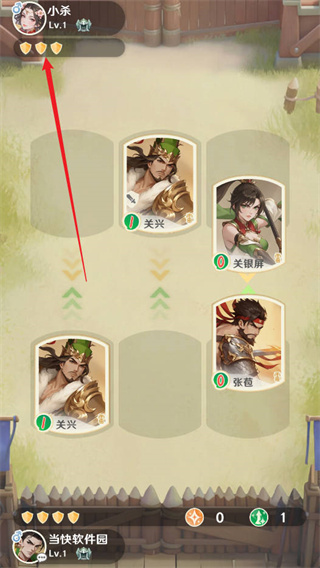 1、获得卡牌后,将卡牌拖拽至上方出战位完成布阵,合理安排武将站位是制胜第一步。