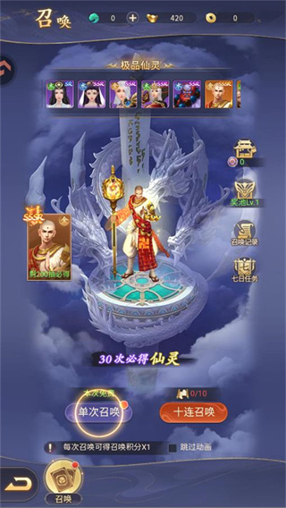 5、仙灵召唤:通过召唤池获取强力仙灵伙伴,助你征战三界,不同仙灵具备专属技能与定位。