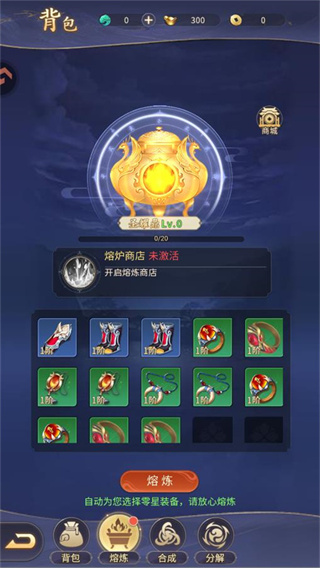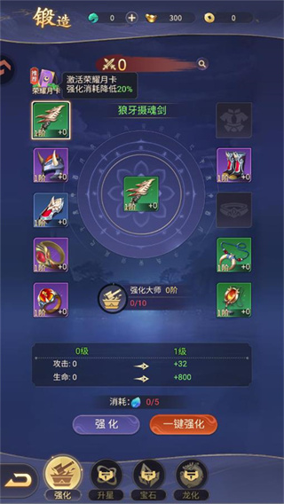 1、熔炼:一键熔炼低阶或零散装备,高效转化为强化所需材料,资源利用更便捷。