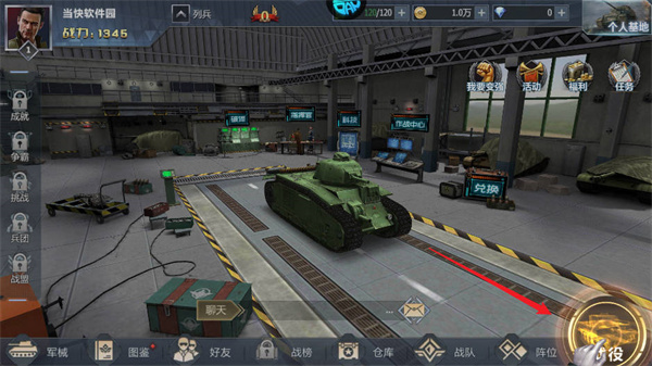 1、进入游戏后,首先前往【军械仓库】,从已解锁的载具中挑选一辆心仪的坦克作为主力。