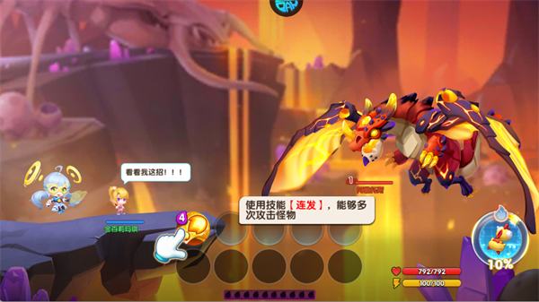 积攒技能点后优先释放【连发】技能,实现多次连续攻击,高效清理小怪或快速削减高血量BOSS血线。