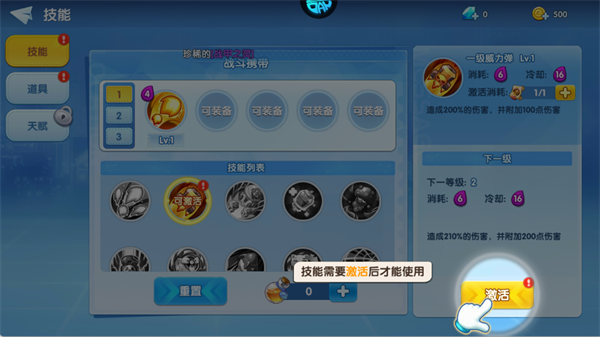优先激活并重点升级“威力弹”等核心输出技能,这是构建高伤害输出体系、提升基础战力的核心养成路径。